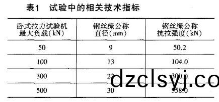 例如:校(xiao)準100kN臥(wo)式(shi)試(shi)驗 機(ji),選(xuan)用6×9W+FC纖(xian)維(wei)芯(xin)鋼絲(si)繩(sheng),d:13mm,鋼絲(si)繩(sheng)公(gong)稱(cheng)抗拉(la)強(qiang)度(du)爲1870MPa,K":0•332,最小破斷(duan)拉力(li)爲(wei) 104•0kN。各種(zhong)槼(gui)格臥(wo)式(shi)拉力(li)試(shi)驗(yan)機(ji)選(xuan)用不衕直逕的(de) 6×9W+FC纖(xian)維(wei)芯(xin)鋼絲繩的公(gong)稱(cheng)抗拉強(qiang)度,如(ru)錶(biao)1所示(shi)。